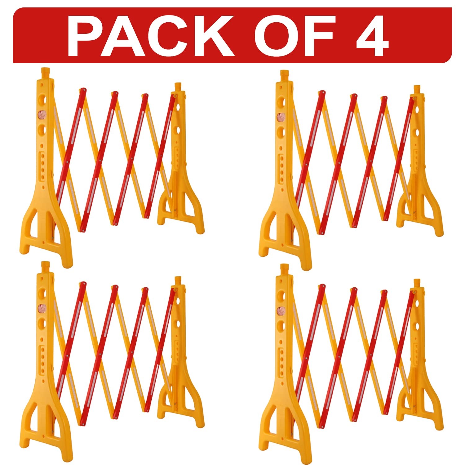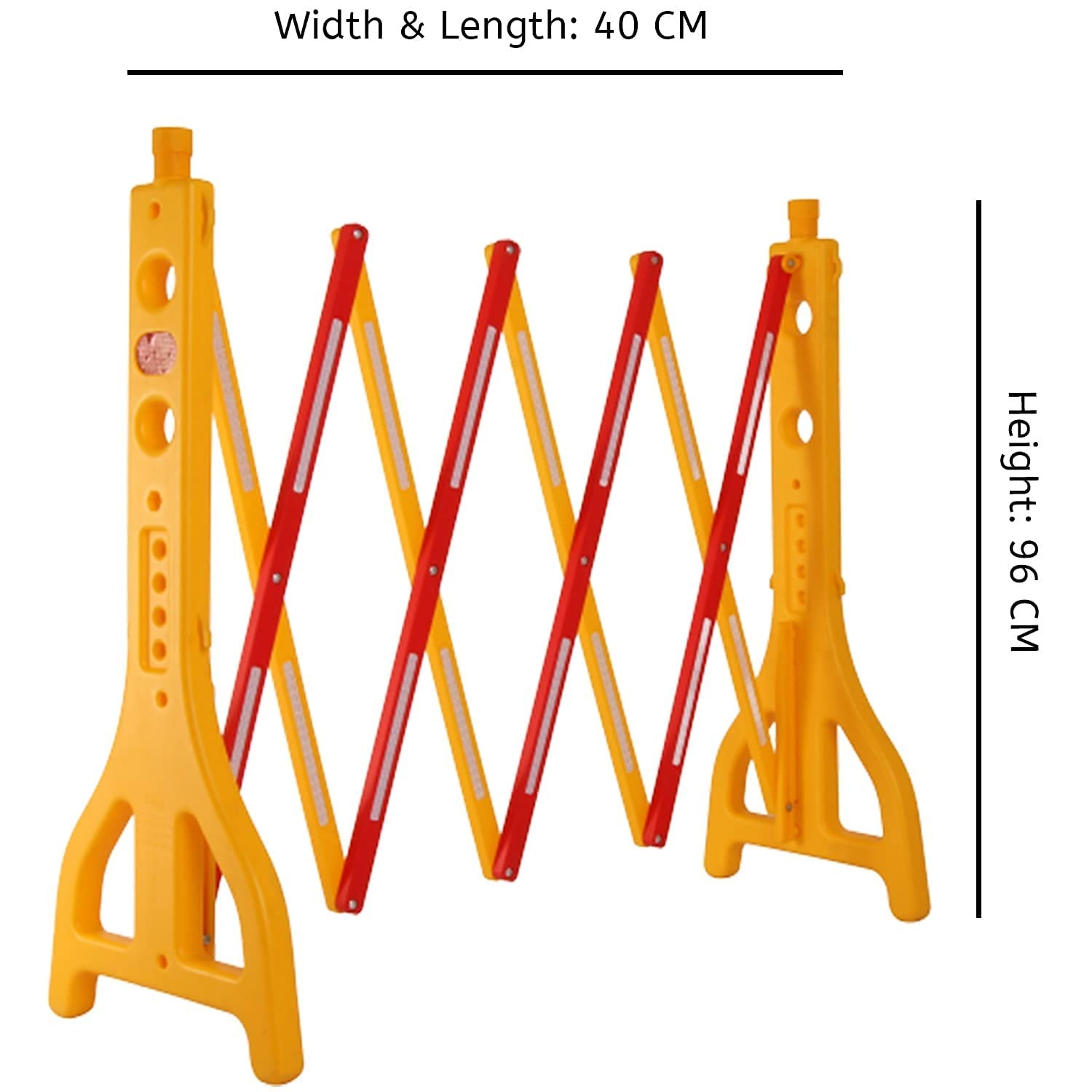ABS INDUSTRY Plastic Expandable Barrier Road Safety Yellow And Red Barrier Portable Road Safety Barriers with Reflectors, Construction Barricade Safety Fence (Pack of 1)