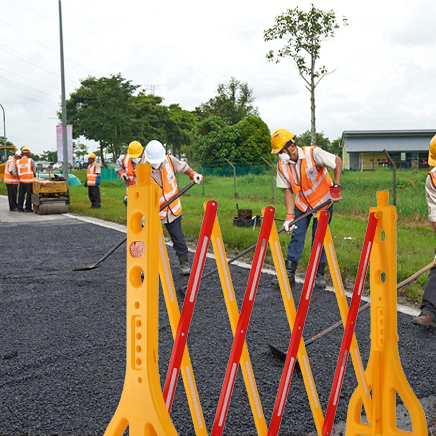 • DEPENDABLE SAFETY BARRICADE: Constructed of thick, impact-resistant, molded plastic, these traffic barricades are designed for durability and longevity; Highly visible yellow and black colors will not fade due to UV rays or harsh weather; Silver and red safety reflectors increase visibility at night; With its sturdy base stand and expandable coverage, this traffic barrier is more effective than caution tape